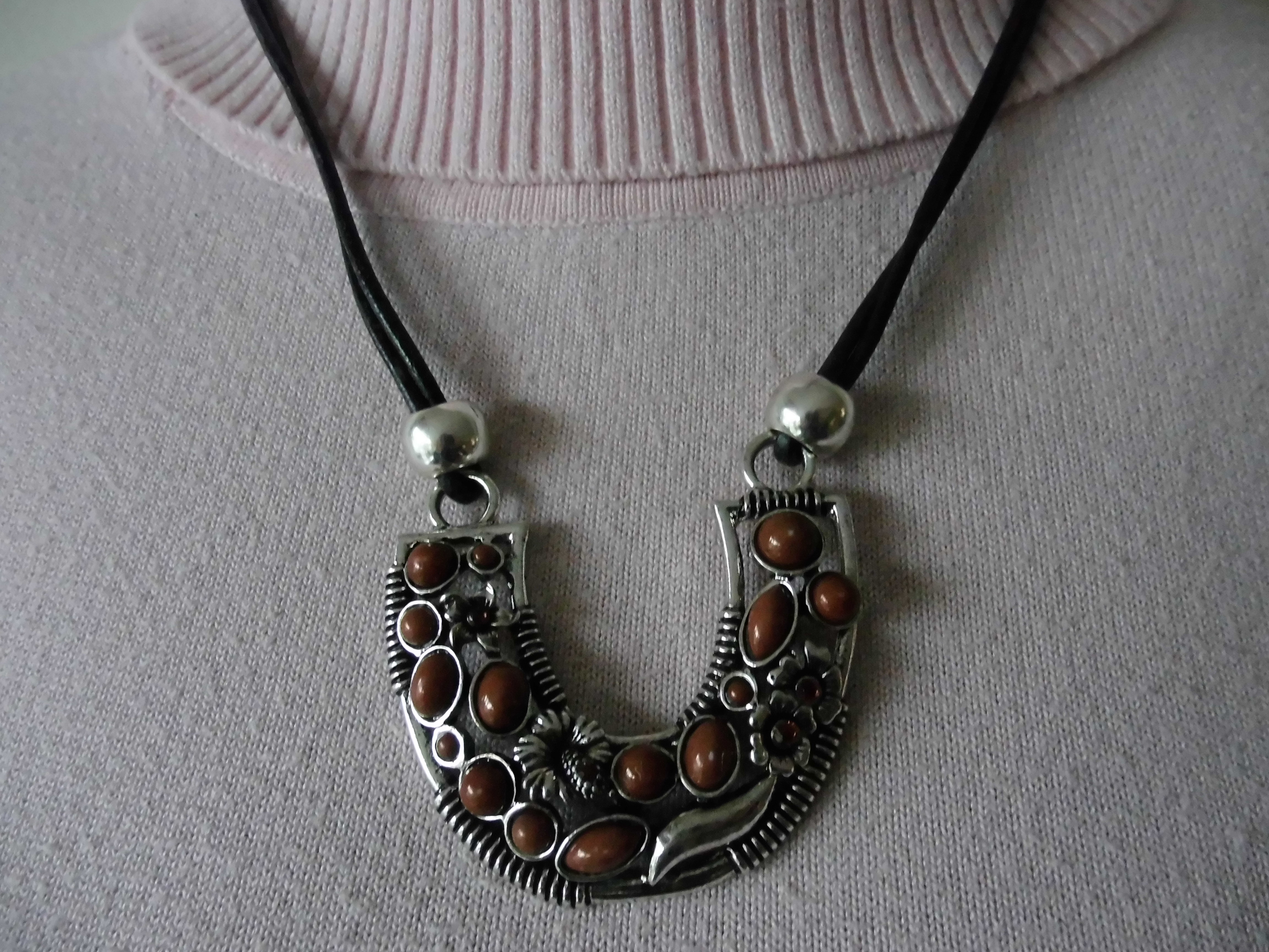 Material: Zinklegierung, Lederband, eingesetzte Modeschmucksteinchen
